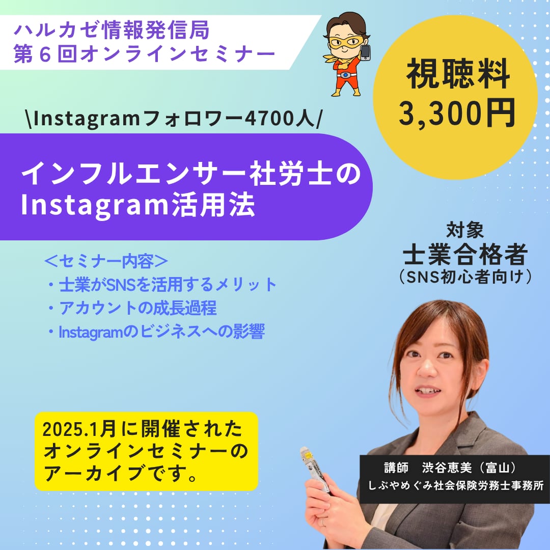 ◆テーマ:Instagramフォロワー数4700人 「インフルエンサー社労士のInstagram活用法」
